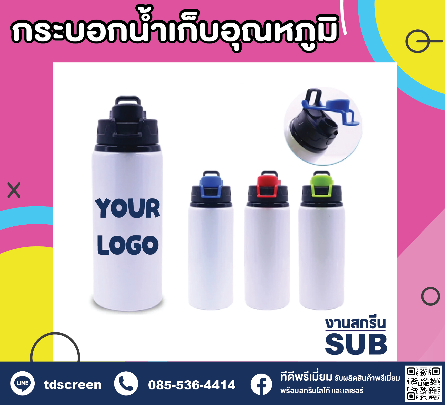 สินค้า ใน สกรีนกระบอกน้ำน้องๆหนูๆ พิมพ์รูปภาพได้ ไม่จำกัดสี (0 ชนิด)